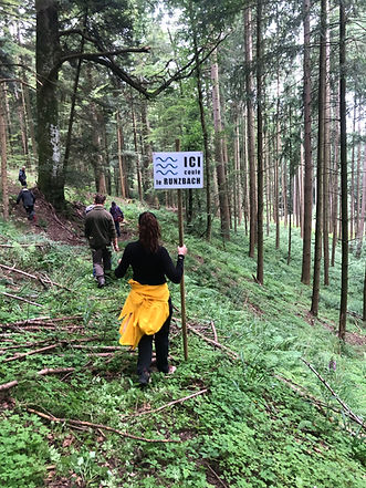 Ce premier temps a permis de mobiliser les habitants et les usagers du site à l’occasion de quatre “invitations”, positionnées tout au long de la semaine : balade commentée sur les traces du Runzbach, atelier avec les enfants de l’école du village, atelier de concertation, visite de références, atelier de préfiguration. Ces différentes rencontres ont permis de faire émerger un état des lieux sensible et fonctionnel de l’existant, répertoriant ainsi les atouts et dysfonctionnements du site de projet. À l’issu de cette semaine, une carte des synthèse des échanges a été réalisée, permettant de projeter spatialement les intentions d’aménagement possibles du site de projet.